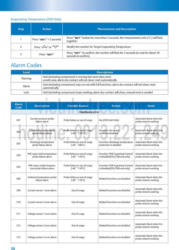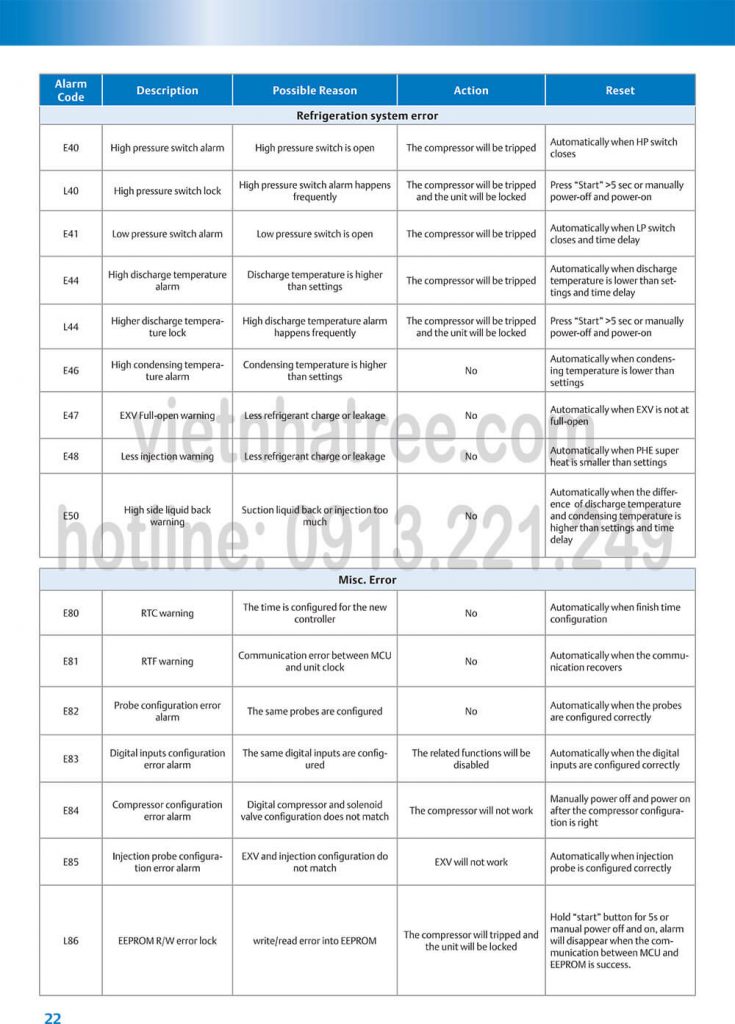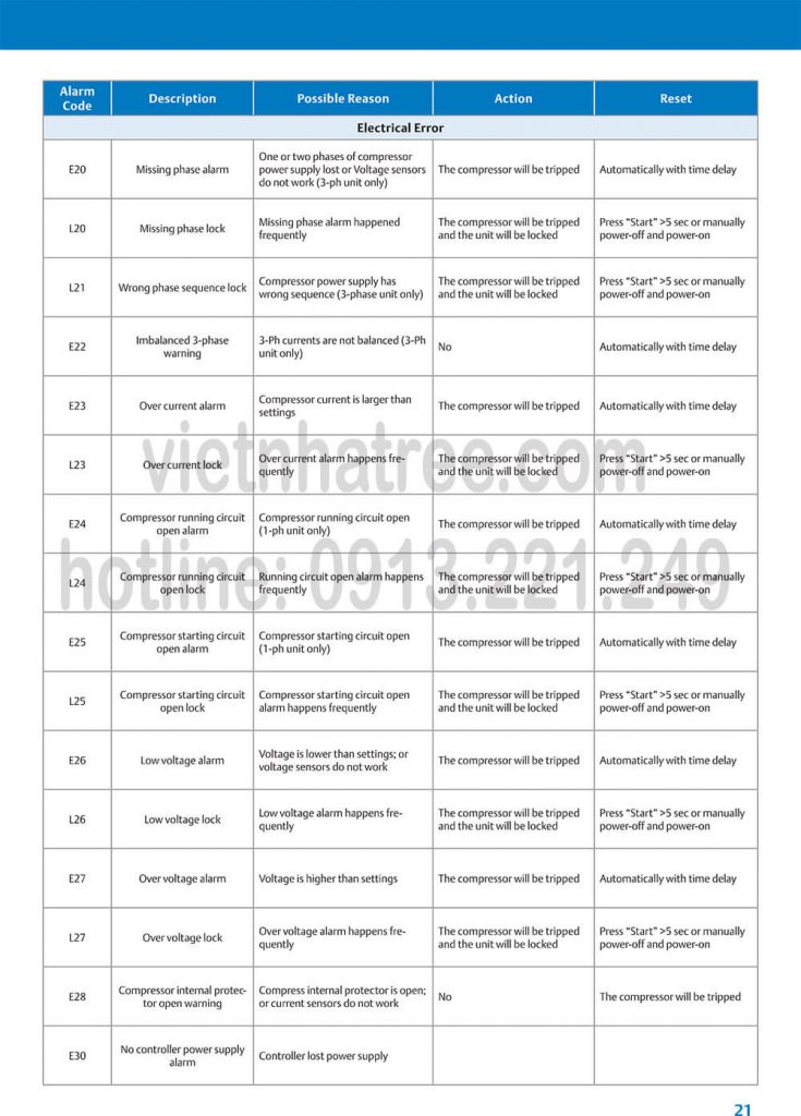 Link Bảng mã lỗi cụm máy nén Emerson: Tại đây (click here)