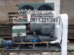 - Cụm máy nén dàn ngưng Copeland dùng loại máy nén Scroll (xoắn ốc) kiểu kín sản xuất tại Thái Lan theo tiêu chuẩn Cao, được lắp ráp và lên cụm tại Việt Nhật theo tiêu chuẩn cao